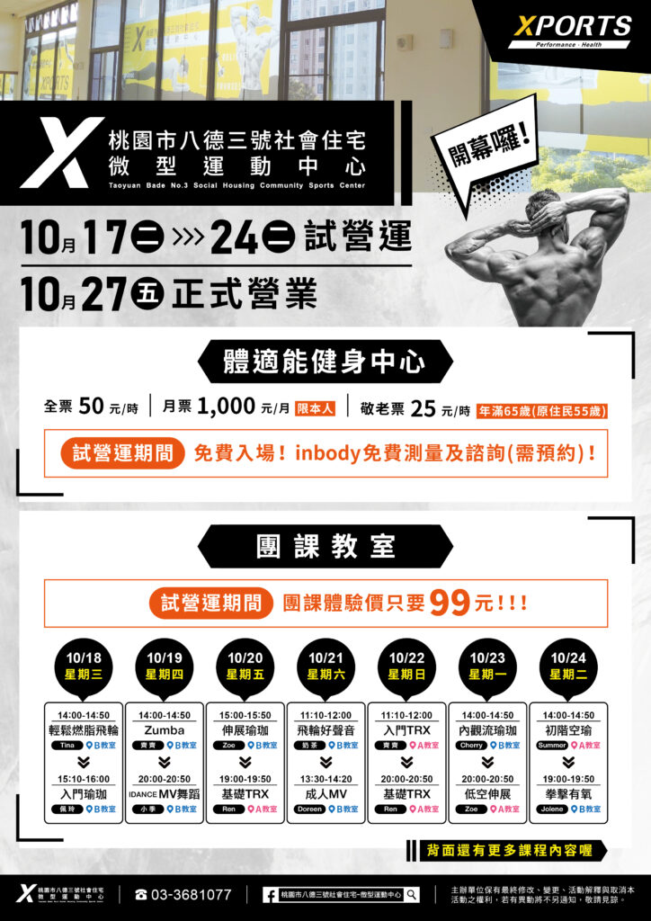 桃園市八德三號社會住宅微型運動中心要開幕啦!!!