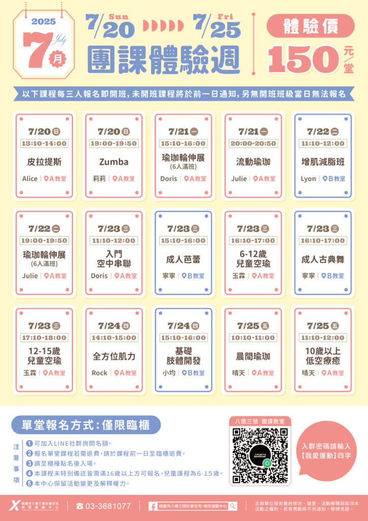 《活動》7月團課體驗週