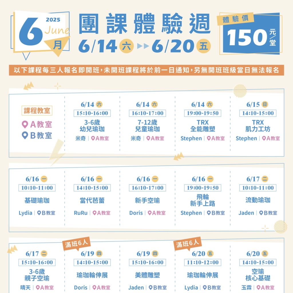 《課程》6月團課體驗週