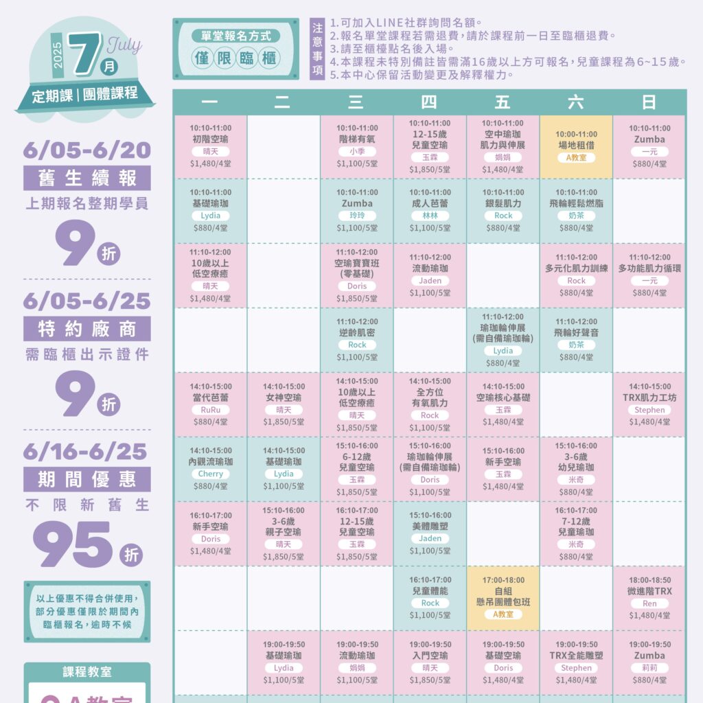 《課程》7月團課簡章